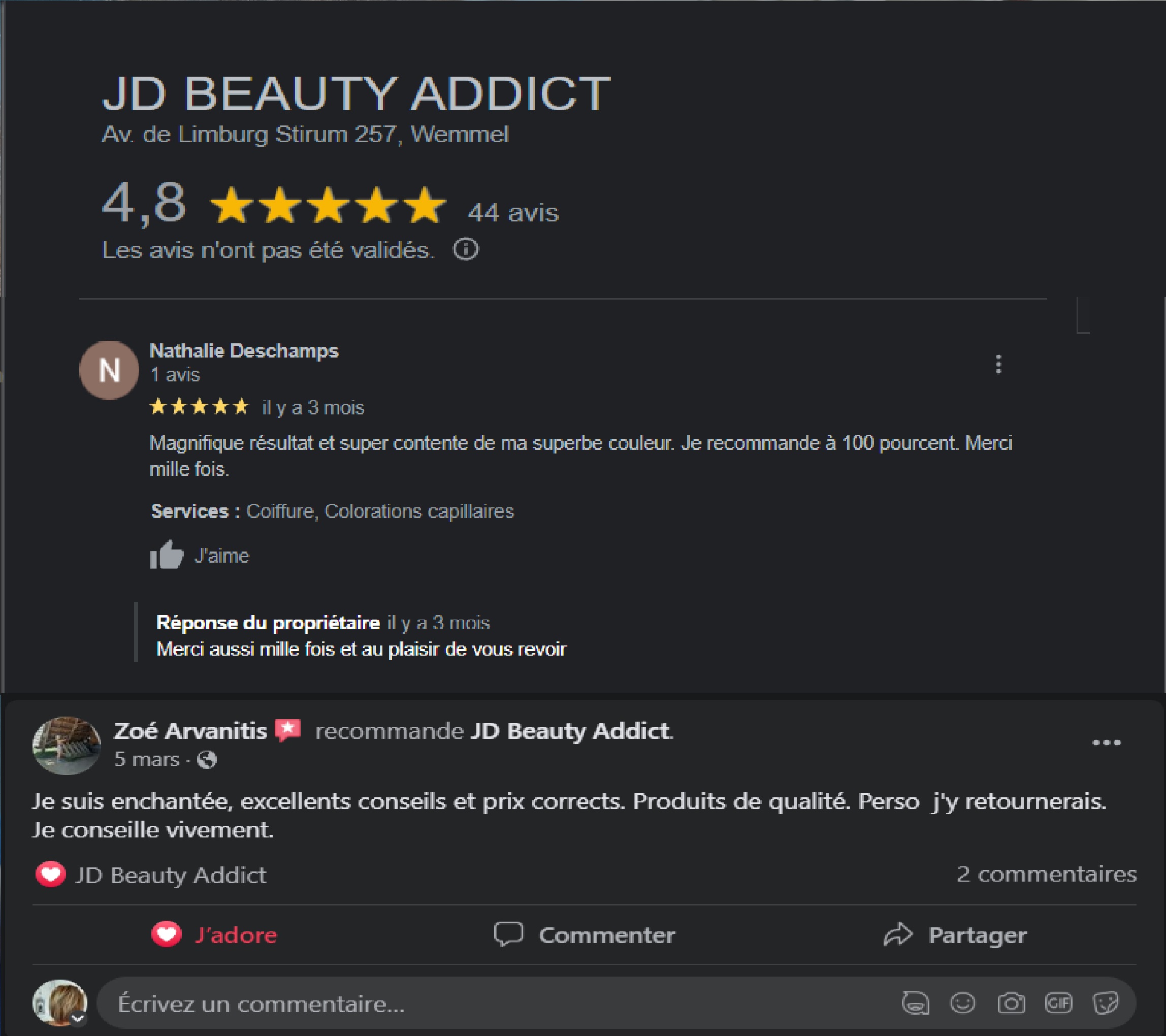 « Chaque visite ici transforme mes cheveux fins en une véritable œuvre d’art, grâce à des soins personnalisés et un accueil chaleureux »